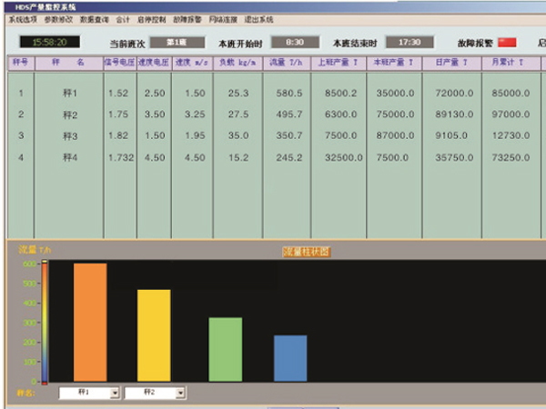 系統(tǒng)概述產(chǎn)量計(jì)量監(jiān)控系統(tǒng)是一種對(duì)煤礦的煤炭產(chǎn)量計(jì)量和管理的智能化設(shè)備,利用計(jì)算機(jī)技術(shù)和通訊技術(shù)對(duì)計(jì)量數(shù)據(jù)進(jìn)行管理,系統(tǒng)由稱重計(jì)量子系統(tǒng);計(jì)算機(jī)管理子系統(tǒng);網(wǎng)絡(luò)通訊系統(tǒng)組成。數(shù)據(jù)監(jiān)控終端可通過對(duì)數(shù)據(jù)服務(wù)器的訪問,實(shí)現(xiàn)對(duì)產(chǎn)量數(shù)據(jù)的實(shí)時(shí)監(jiān)控。并將實(shí)時(shí)產(chǎn)量數(shù)據(jù)通過WEB發(fā)布到局域網(wǎng)內(nèi)的信息平臺(tái),供企業(yè)內(nèi)部瀏覽、查詢和數(shù)據(jù)歸總等管理。系統(tǒng)技術(shù)參數(shù):計(jì)量精度:優(yōu)于0.25~1.0%計(jì)量電子皮帶秤數(shù)量:1-16臺(tái)(以太網(wǎng)形式可達(dá)16臺(tái)的整數(shù)倍)通訊距離:30km(以太網(wǎng)形式可突破地域限制)(軟件界面)系統(tǒng)功能及特點(diǎn) 計(jì)量獨(dú)立,不受中心站停電、故障以及通訊線路的影響,可以自動(dòng)換班,能永久存儲(chǔ)班產(chǎn)量; 動(dòng)態(tài)測量精度高,性能穩(wěn)定,工作可靠,零點(diǎn)漂移自動(dòng)跟蹤功能模塊,保證系統(tǒng)計(jì)量精度長期穩(wěn)定;不受物料的物理性質(zhì)的影響,輸送不同物料時(shí),不須重新標(biāo)定; 數(shù)據(jù)庫型上位機(jī)集控軟件,形象直觀運(yùn)行界面、操作簡單,信號(hào)、瞬時(shí)流量、皮帶開停時(shí)間累計(jì)等多圖表顯示和動(dòng)態(tài)曲線顯示; 皮帶秤數(shù)據(jù)可通過礦井電話通訊線路或礦井工業(yè)環(huán)網(wǎng)交換機(jī)進(jìn)行數(shù)據(jù)傳輸,集控軟件通過局域網(wǎng)對(duì)皮帶秤計(jì)量數(shù)據(jù)進(jìn)行采集。 豐富多樣報(bào)表數(shù)據(jù)瀏覽形式,能夠?qū)Π喈a(chǎn)量、日、月、年產(chǎn)量進(jìn)行多種統(tǒng)計(jì)查詢處理; 生產(chǎn)效益統(tǒng)計(jì)分析功能,獨(dú)有的防作弊數(shù)據(jù)處理功能; 操作人員無需下井即可完成對(duì)井下電子秤的日常標(biāo)校及狀況管理; 支持OPC接口、FTP接口等豐富多樣的數(shù)據(jù)輸出接口,方便企業(yè)進(jìn)行數(shù)據(jù)采集和管理。 可實(shí)現(xiàn)網(wǎng)絡(luò)連接,通過web發(fā)布實(shí)現(xiàn)局域網(wǎng)上數(shù)據(jù)共享。計(jì)量系統(tǒng)圖片
